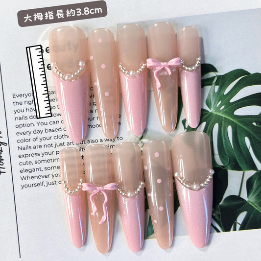 現貨嚴選穿戴甲 蝴蝶結法式芭比粉 長尖甲 喜歡粉紅色芭比風不能錯過它!