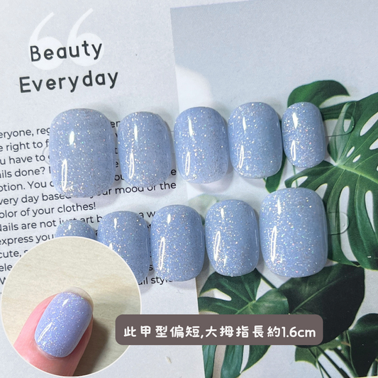 現貨S 美甲師手作穿戴甲 冰雪女王的藍色碎鑽❄️ 短圓款讓你日常使用方便❤️