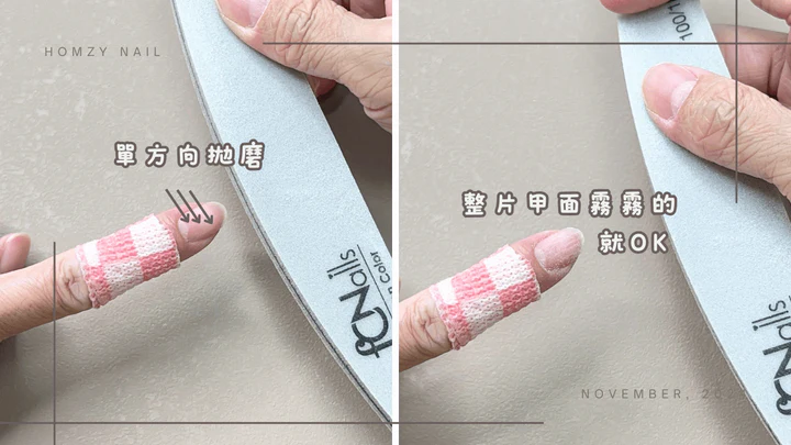 (2025/3/5補充:使用果凍膠建議整面指甲拋霧。固態膠和固態果凍膠建議不要整面拋,不然會很難卸喔!可以選擇不拋或拋一點點就好)