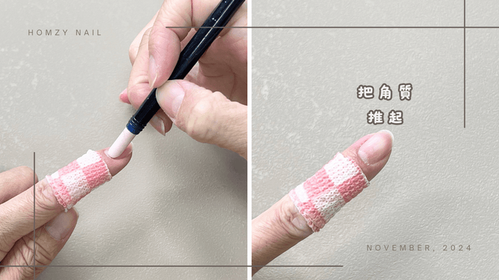 你可以選擇在洗澡後直接推角質,或者是使用前面提到的指緣軟化劑處理。