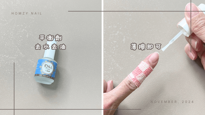 平衡劑的功用在於去水去油,一般在做指甲時也會用到,