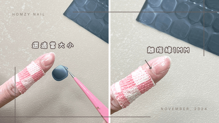 選擇一個與甲面相似的大小,貼的時候要離指緣約1mm。