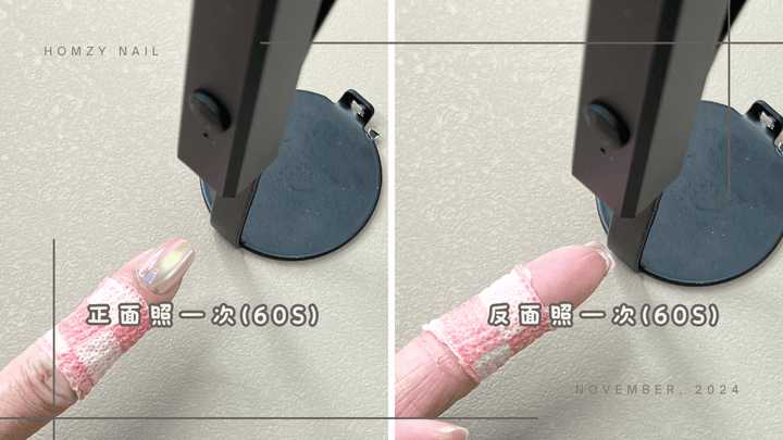 在照燈時除了正面照60秒以外,反面也要照60秒,避免膠沒照乾,容易翻起。