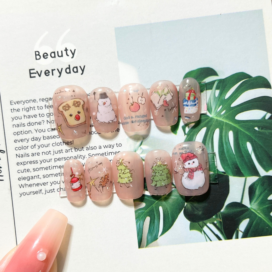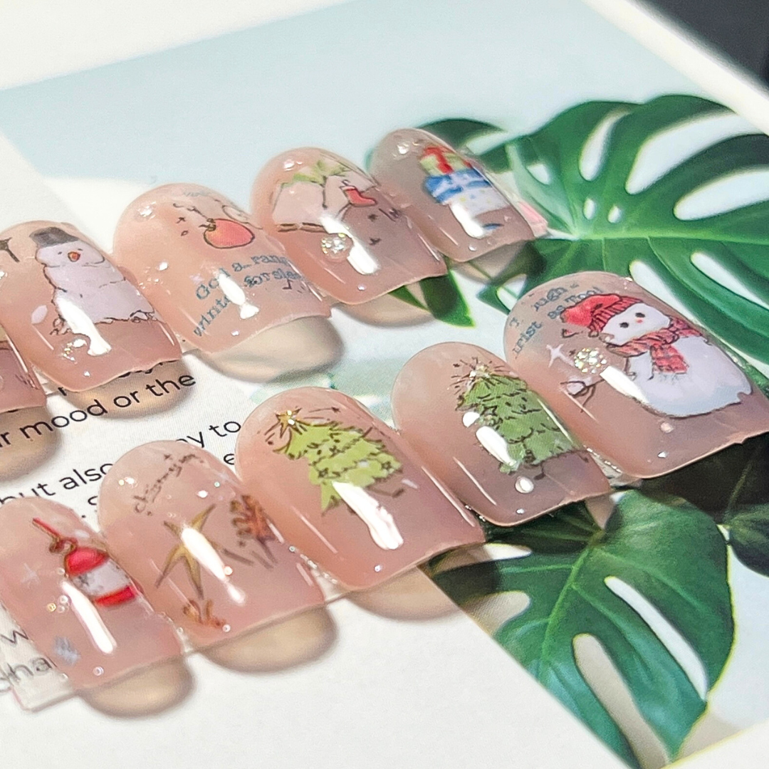 現貨S 美甲師手作穿戴甲 手繪風聖誕美甲 超短梯 適合喜歡低調可愛款式的女孩❤️