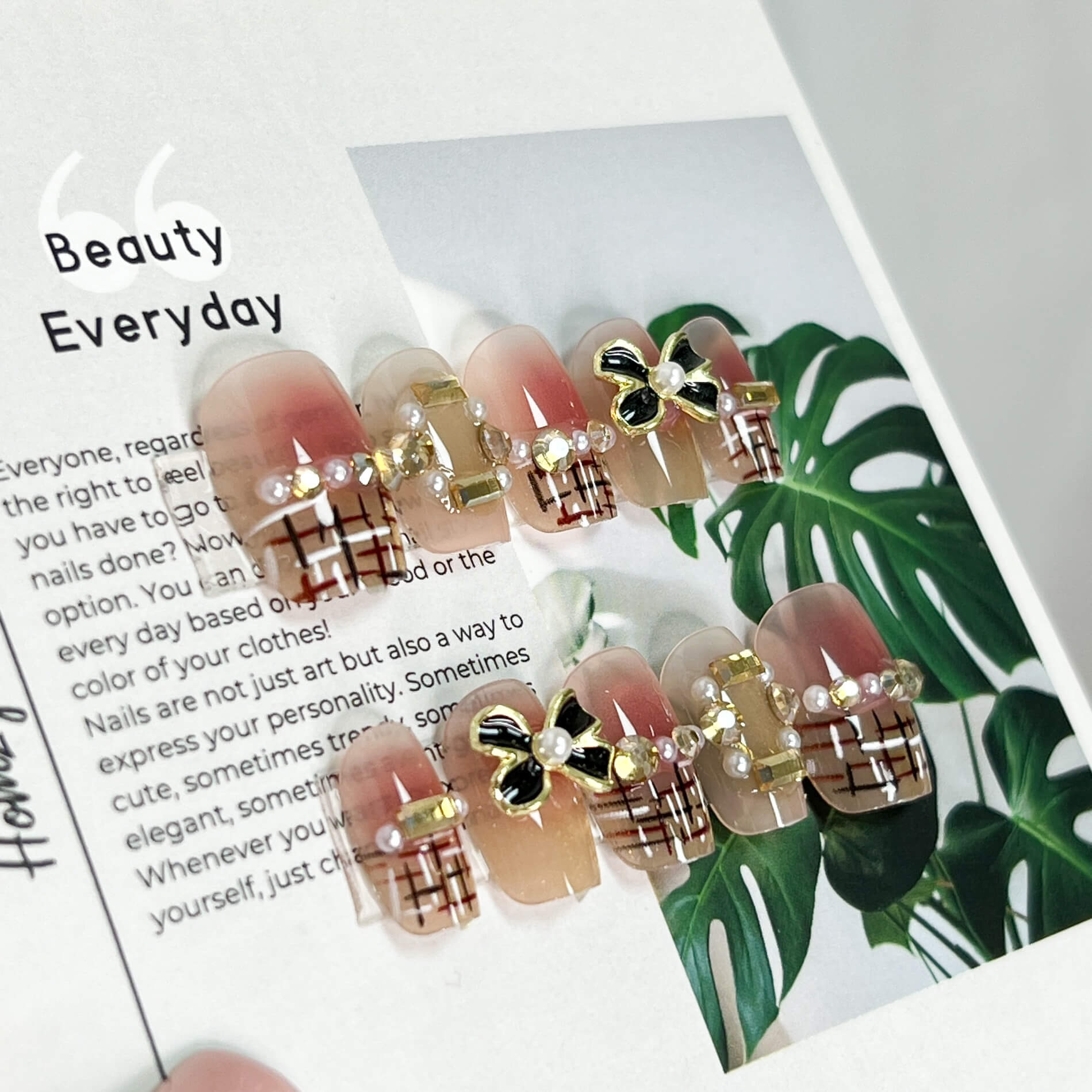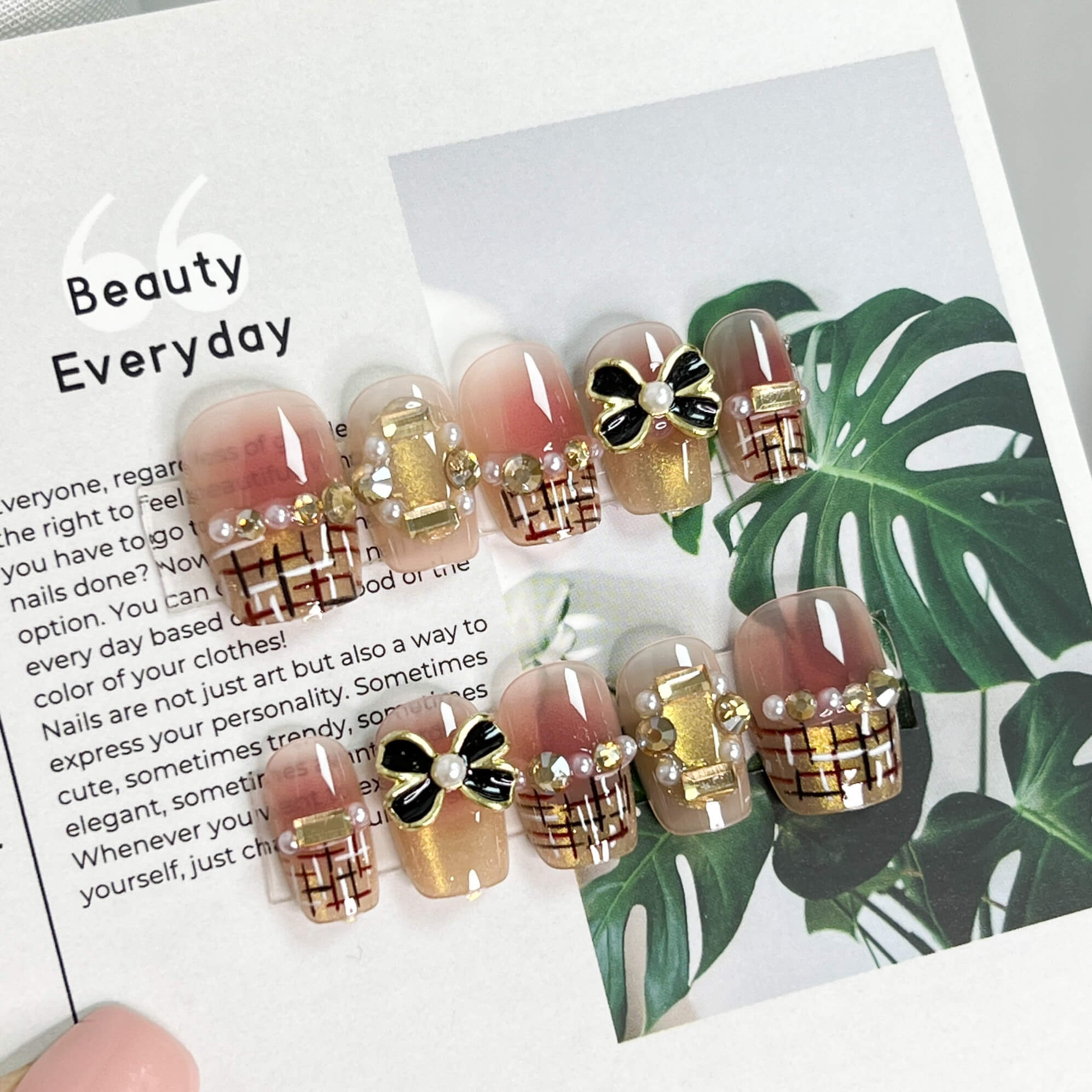 同價位買五送一 現貨穿戴甲 現貨24H出 千金風千鳥紋蝴蝶結短梯甲