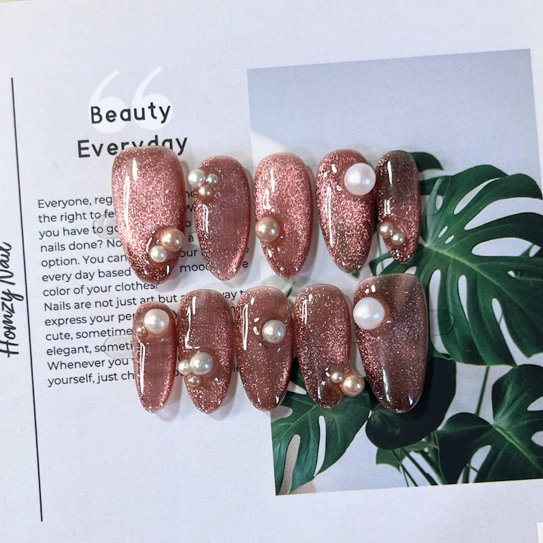 美甲師手作穿戴甲 貓眼珠珠杏仁甲 還有其他顏色喔!