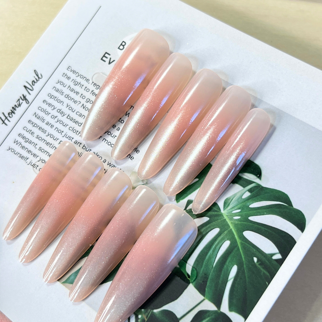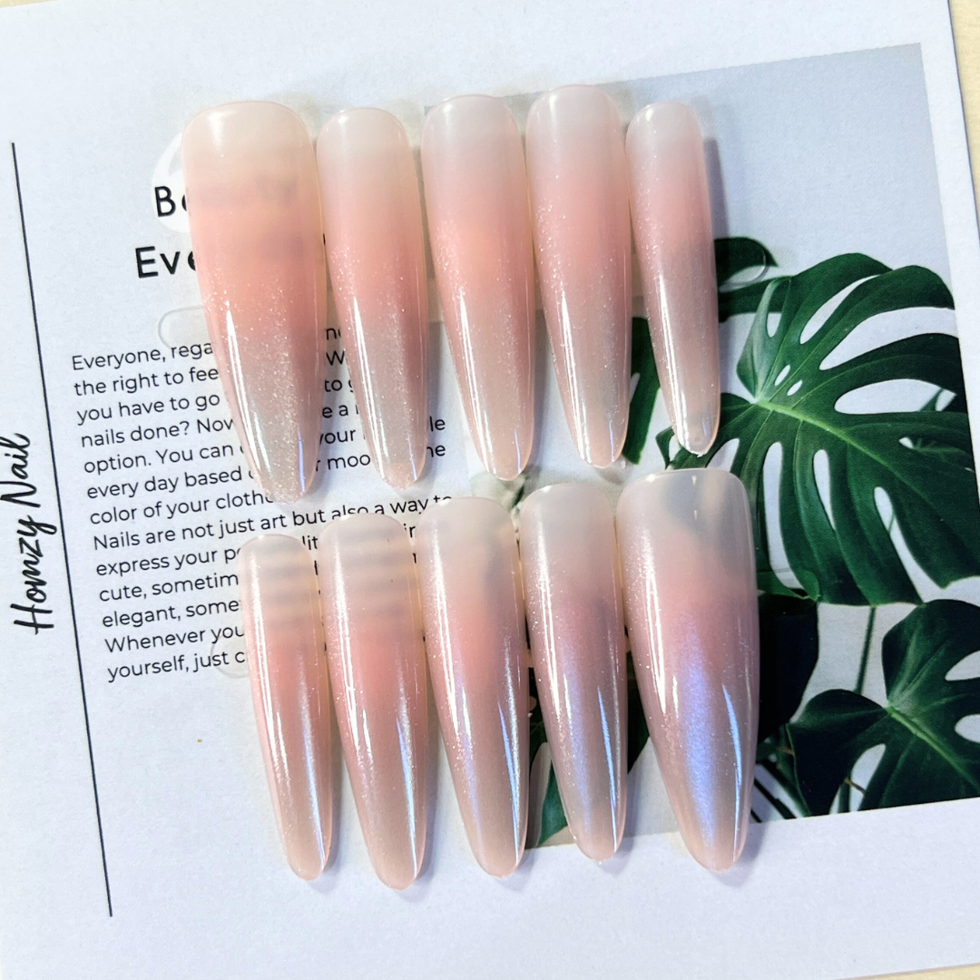 現貨嚴選穿戴甲 超修長!粉嫩腮紅漸層貓眼 長尖甲 想要手指夭壽長又美選它!