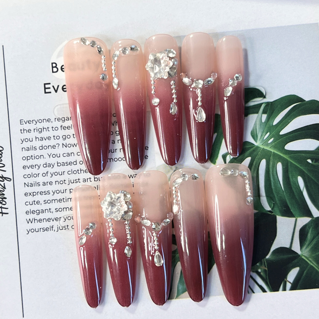 現貨嚴選穿戴甲 華麗紅紫鑽鑽 長尖甲 婚禮搭配禮服加分的好幫手!
