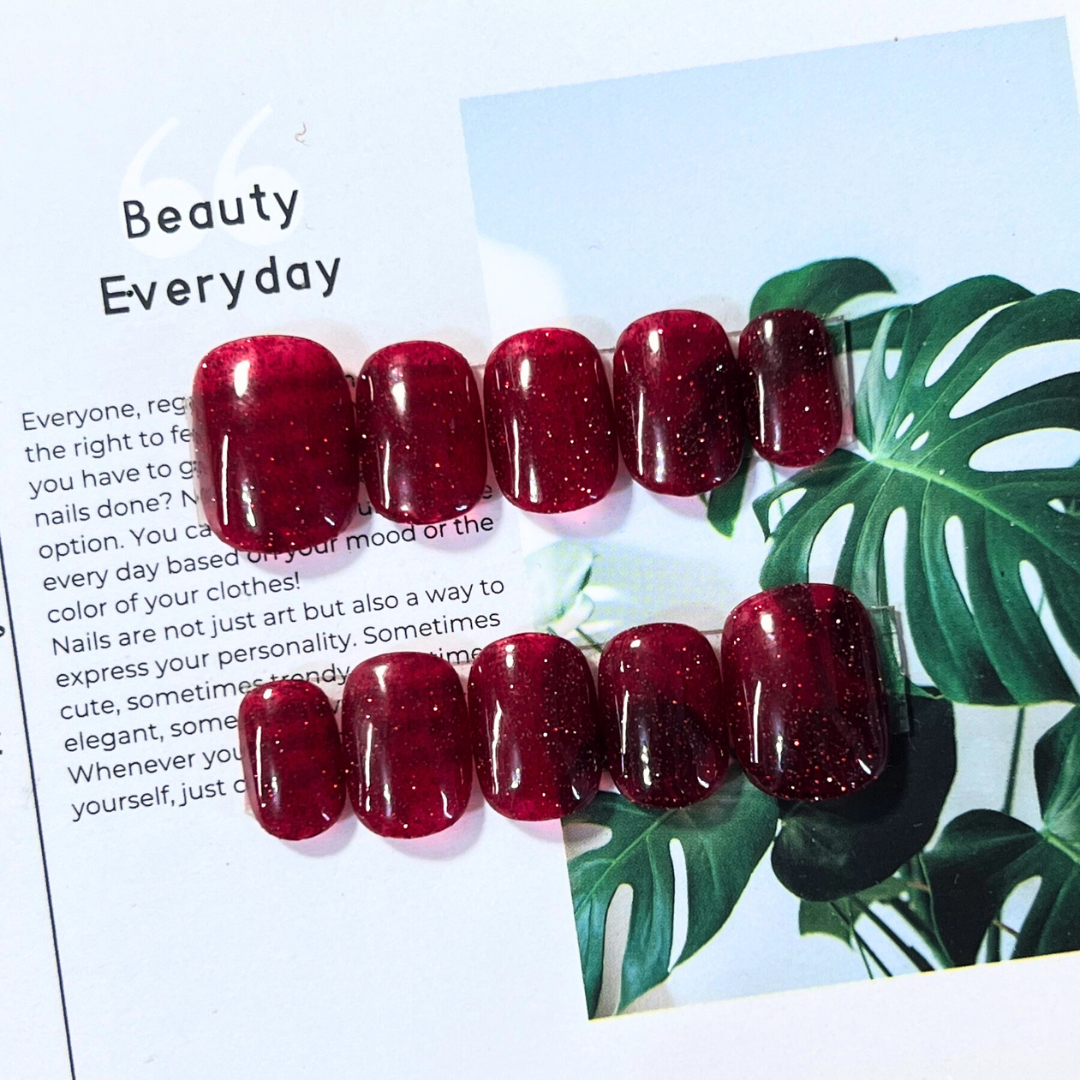 美甲師手作穿戴甲 細粉聖誕紅 顯白王者 超短圓甲 ⚠️甲床太長不要買喔⚠️ 排單生產 最快隔日交貨