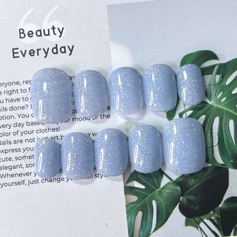 現貨S 美甲師手作穿戴甲 冰雪女王的藍色碎鑽❄️ 短圓款讓你日常使用方便❤️