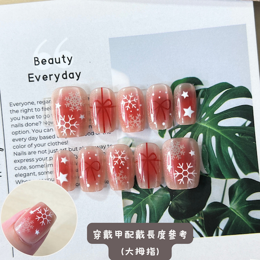 聖誕美甲 現貨 穿戴甲 腮紅款雪花❄️禮物🎁短梯甲 同價位買五送一