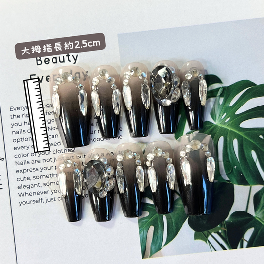 現貨嚴選穿戴甲 酷黑漸層鑽 中長梯 適合又辣又酷的女孩🖤