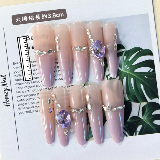 現貨嚴選穿戴甲 輕奢芋泥鑽鑽長尖甲 喜歡華麗款不能錯過它!舉手投足都好亮!