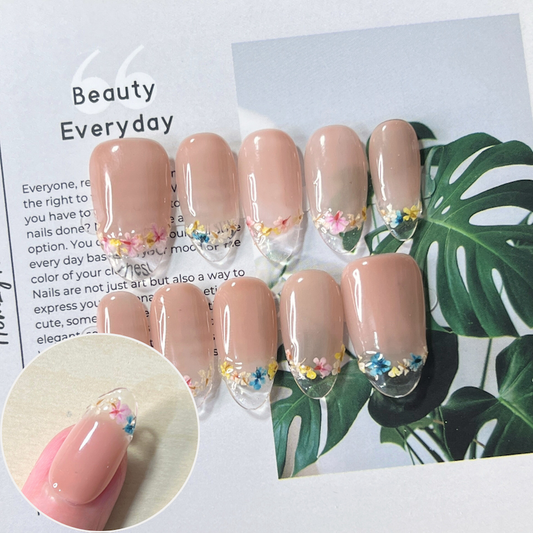 現貨M 美甲師手作穿戴甲 裸色法式乾燥花 想要氣質就選它❤️ 經典日式杏仁甲