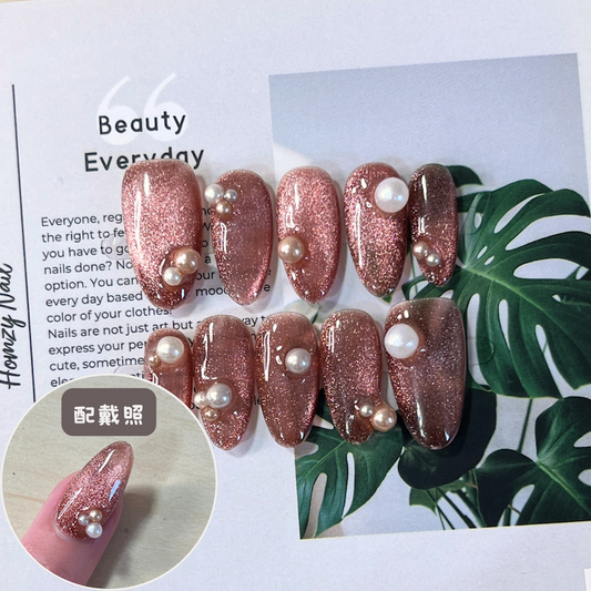 現貨S 美甲師手作穿戴甲 聖誕節那種貓眼 亮亮珠珠杏仁甲 除了紅貓眼之外還有咖啡色金色芋紫色